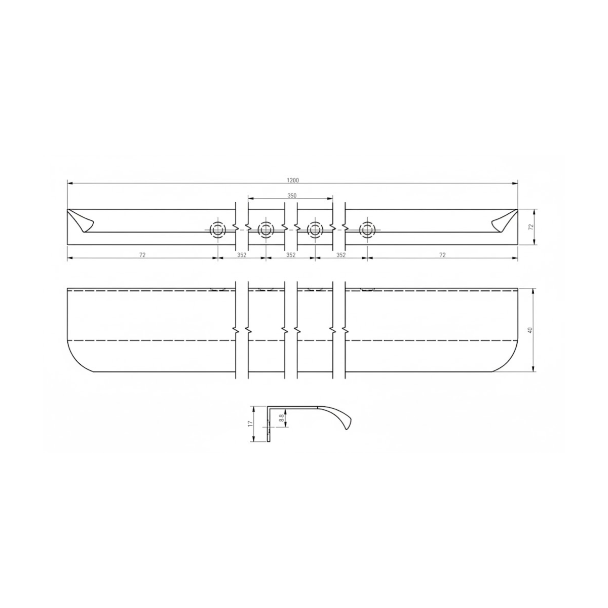 Rankenos profilis HEXA, L-1200mm, juoda matinė